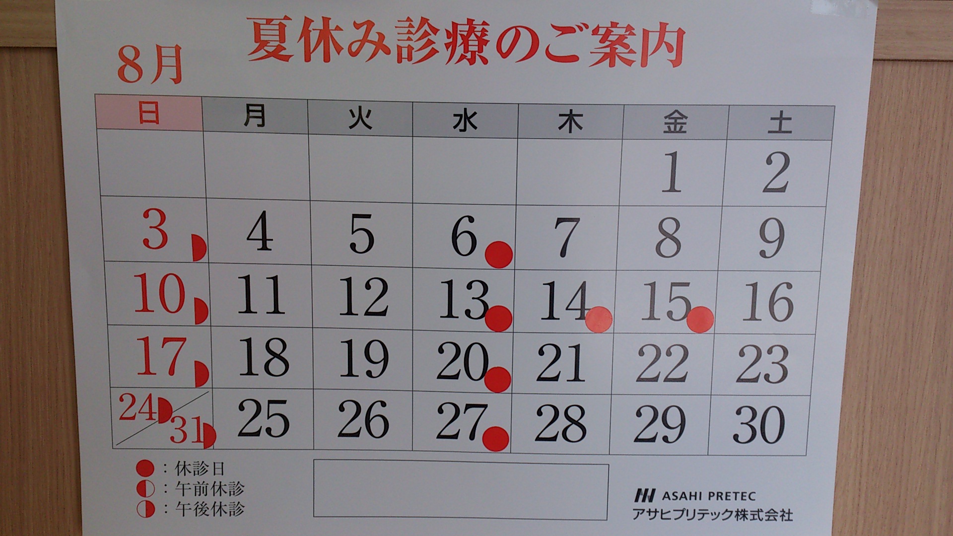 ここで、お休みのご案内です。